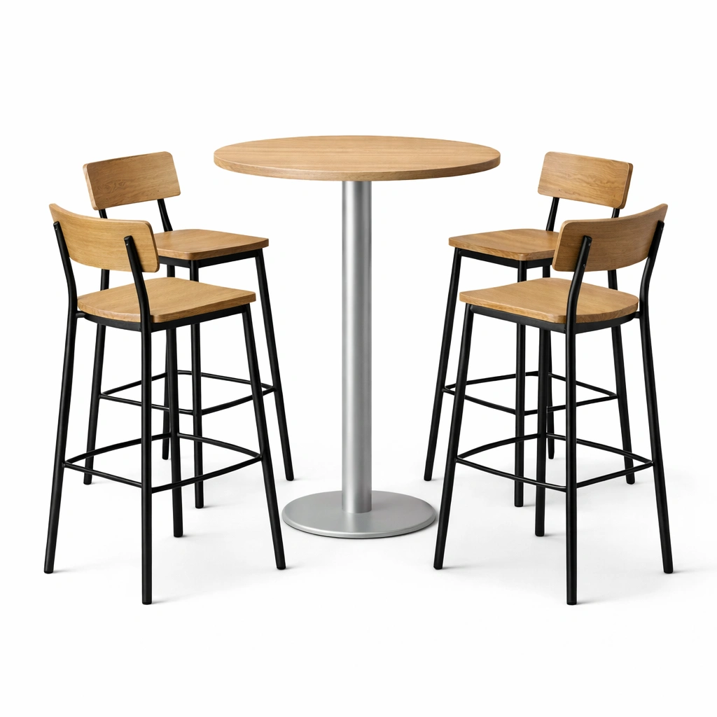 Bar-Set Rund Metall Holz Natur Schwarz