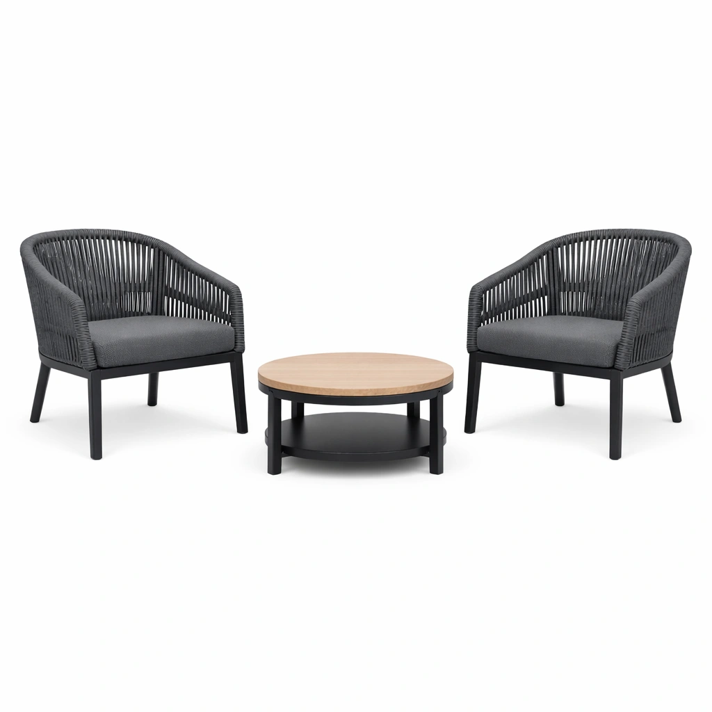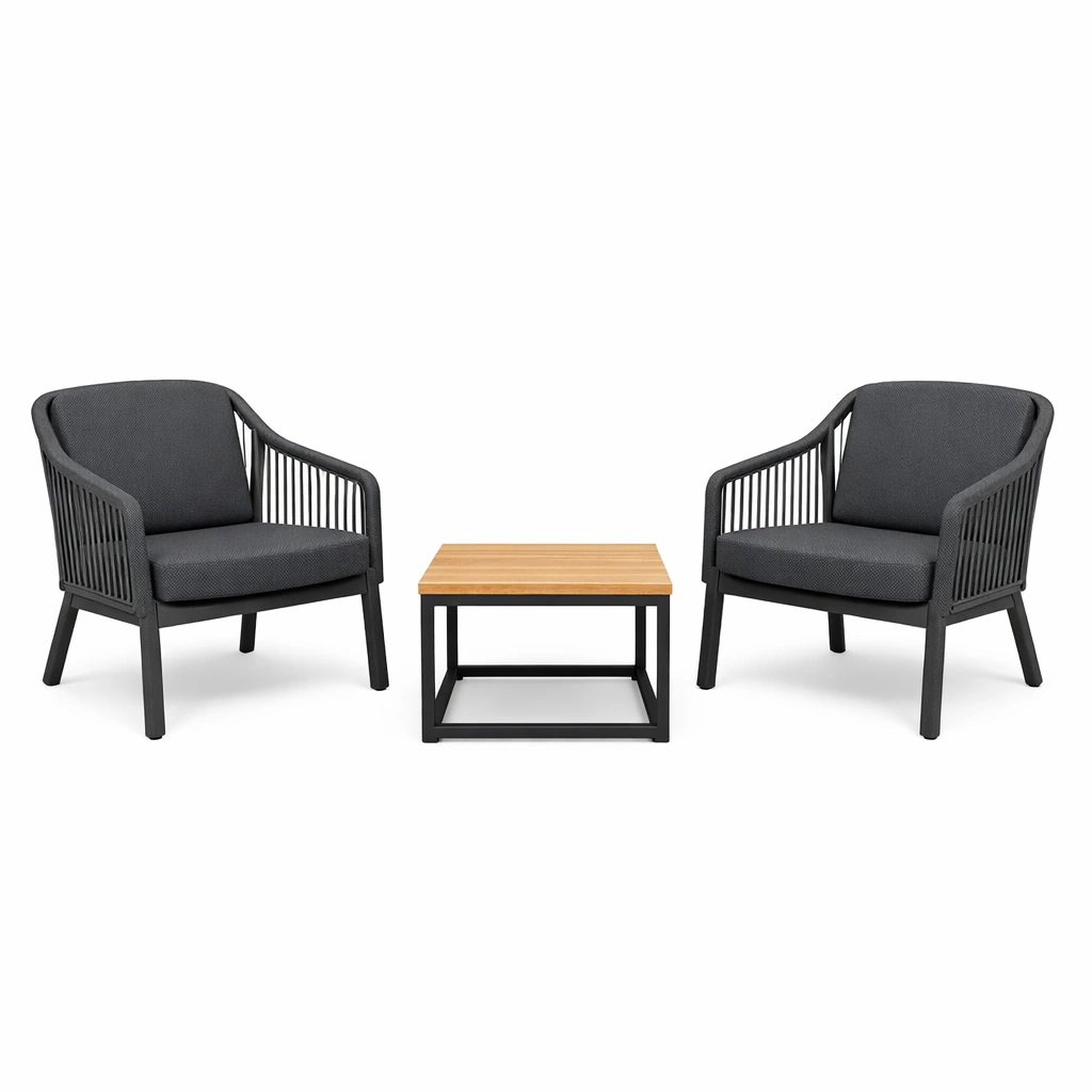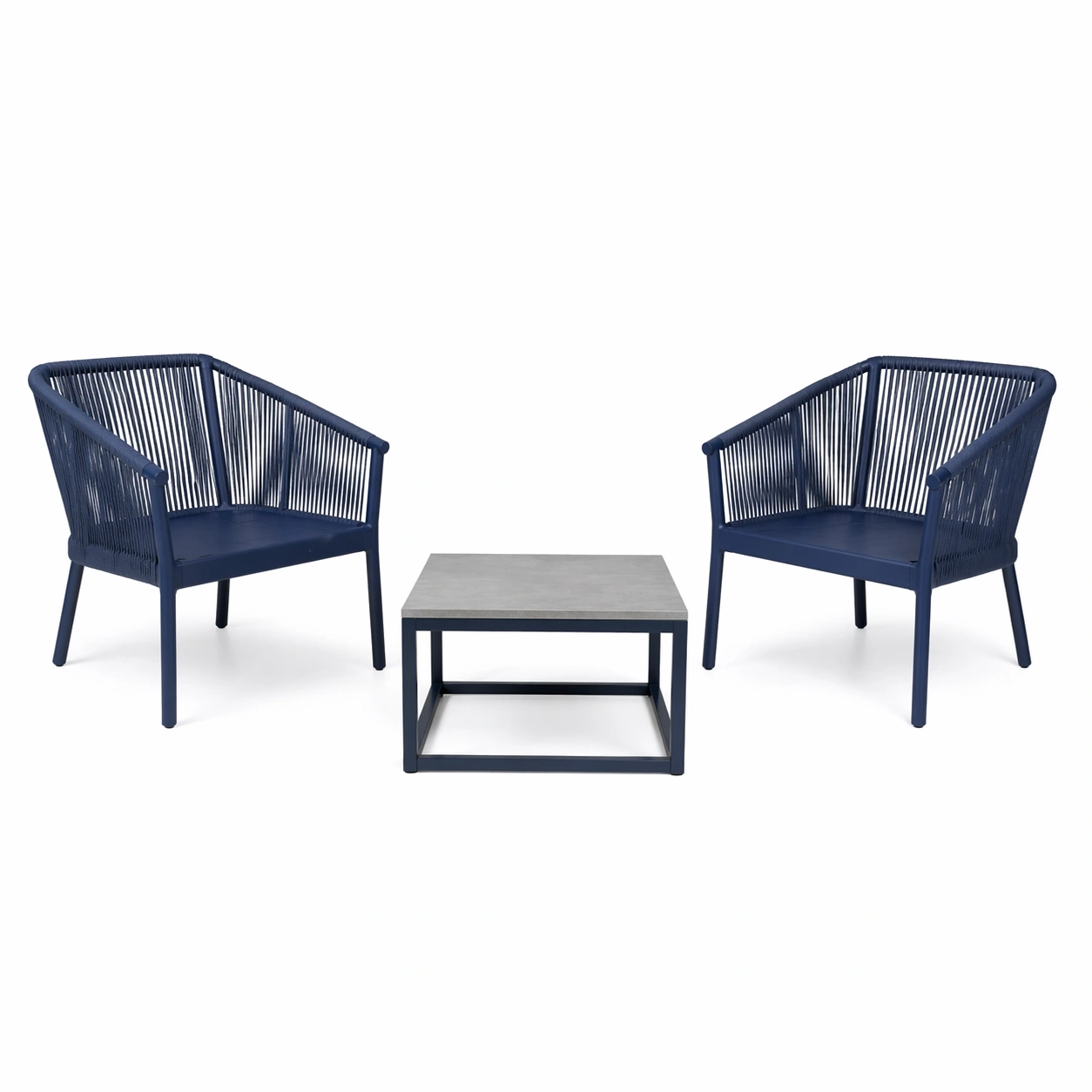 Loungeset Aluminium Seil Blau Sessel Tisch
