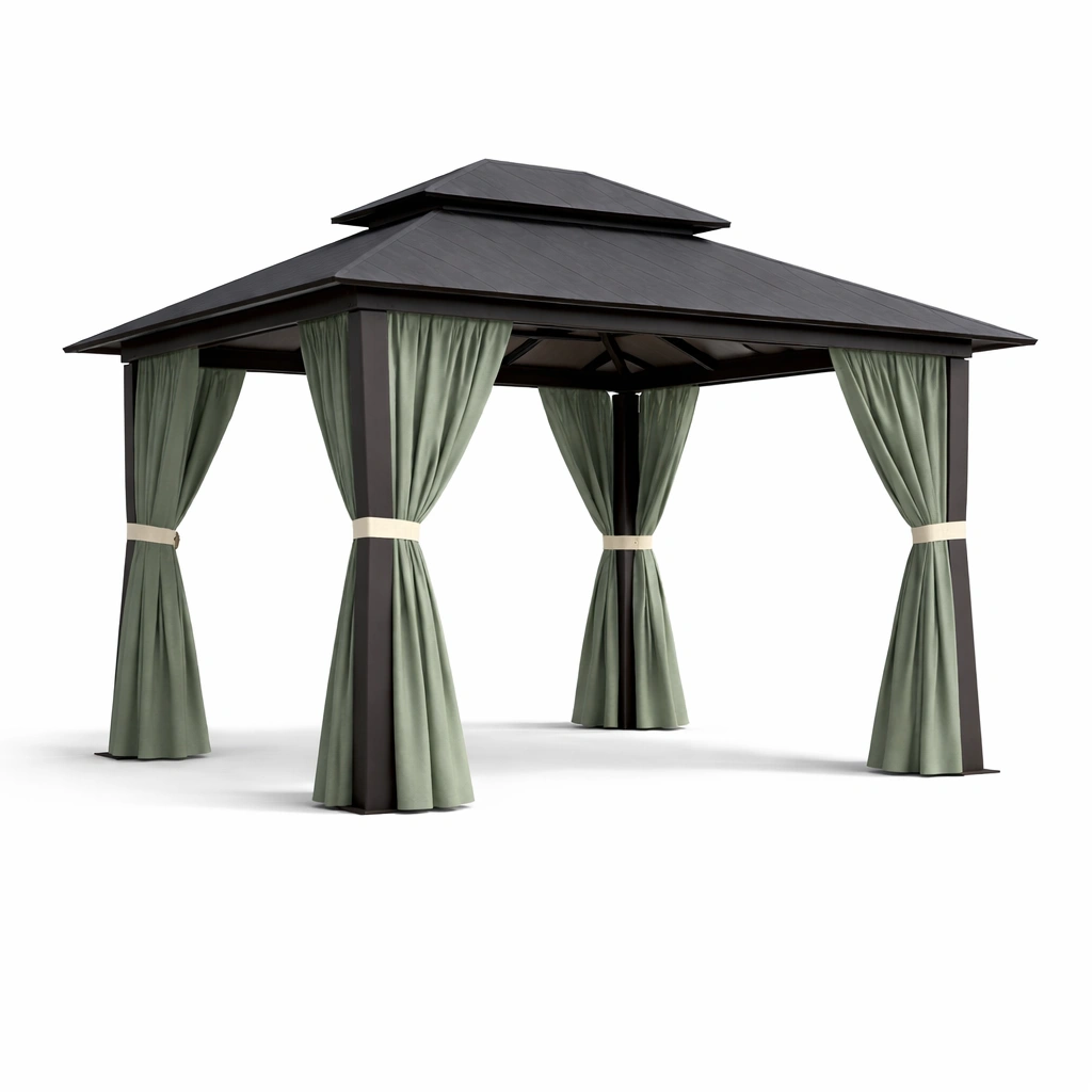 Pavillon Metall Polyesterdach Vorhänge Grün Creme 300x300x270 cm