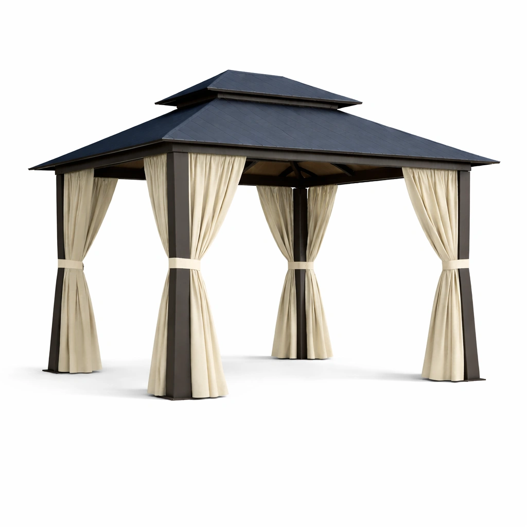 Komponenten: Aluminiumrahmen, Dachpaneele, Vorhänge